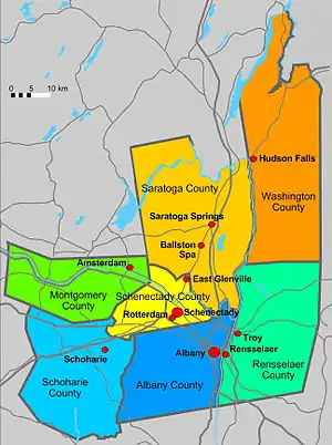- Albany County - The state's capital city and its suburbs in the east; still rural in its west