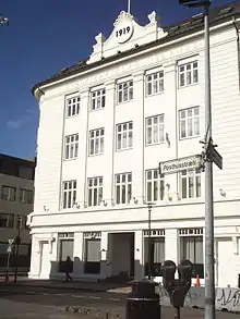• 🌍 Radisson Blu 1919 Hotel, Pósthússtræti 2, +354 599 1000, . New hotel in an old building built in 1919 which housed the head offices of the shipping company, Eimskip. Eimskip's pre-World War II logo was a blue swastika, and this used to adorn the front of the building. When it was converted into a hotel a sign was put over the swastika, but as it's a listed building the swastika could not be removed and is still there, behind the sign.