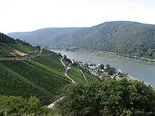 This section is considered to be one of the most scenic landscapes of Germany and noted for its many romantic, high-medieval hilltop castles on either side of the stream. The whole cultural landscape of the upper Middle Rhine Valley is listed by UNESCO as part of the World Heritage.