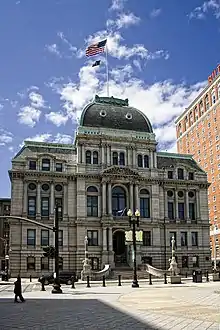 Rhode Island (RI) is the smallest state of the United States of America, tucked between Massachusetts and Connecticut in New England. Nonetheless, it has over 400 mi (640 km) of coastline, courtesy of Narragansett Bay and islands such as Aquidneck Island, home to Newport, the "City by the Sea". While Rhode Island contains the name "island" in its name, most of its area is not on an island.