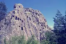 - ๐ Thracian cult complex โOrlovi skaliโ (Eagle Rock Sanctury). A historic Thracian site near Ardino and consists of niches cut into a large rock standing above the forest. The site was obviously of religious significance. This Thracian phenomenon, the "trapezoid alcoves" are found all over the Rhodopes dug high in difficult to reach rocks. There is no definite answer as to how or why the Thracian people made them. The Orlovi skali (Eagles' Rocks) site carries about 100 insections. From Ardino an asphalted road takes you to a small parking at the start of a trail. It takes about 15 min of moderate intensity walk to get there.