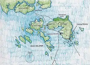 - π Bintan. - The largest island, home to the provincial capital Tanjung Pinang and to a large resort area