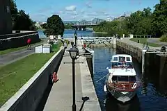 The entry points to the canal are Kingston to the south, from Lake Ontario and the St. Lawrence River (elevation 74 m), and Ottawa in the north from the Ottawa River (elevation 40 m).