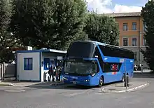 A direct line is run by regional company COTRAL, with a bus every half an hour during working days or every hour in sunday or holidays; it uses much more modern vehicles and is quite comfortable, unless it gets trapped in Rome's terrible traffic. The COTRAL bus starts from Rome's Tiburtina railway station and leaves you in Rieti's π COTRAL bus station., just outside the train station. The ride lasts around one hour and a half or a little more, depending on traffic; the ticket is around β¬5, and can be bought in most newsstands and tobacconists (tabaccheria), asking for a "fascia D" Cotral ticket.