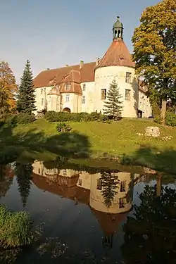 - 🌍 Jaunmokas Castle / Palace (Jaunmokas Manor / Jaunmoku pils), Jaunmokas, Tumes pagasts, ☏ +371 63107125, +371 26187442, +371 63124572 (museum), info@jaunmokupils.lv. M-Su 10:00-18:00 (museum). Forestry museum, guide, castle interior, the room of columns, lodging, horse-drawn carriage rides, the centre of Latvian ornament, herbal teas.