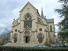 - 🌍 Notre-Dame-des-Victoires Church (Minimes Church), rue des Minimes. Built by the Lyon diocesan architect Auguste Desjardins in 1864. Gothic in style from the 13th century, it is built in hard-grained limestone end enhanced with Volvic lava in places. It has a magnificent high altar, a sculpted altarpiece and statues like Notre-Dame-de-Pitié. It is also the largest and most beautiful of the churches in Roanne. The bell tower undertaken around 1884 contains the largest bell in the city (1,660 kg). In 1926, after losing the cross adorning its facade, an additional bell was added.
