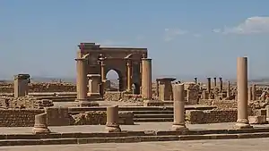 - 🌍 Diana Veteranorum (54 km south of Batna). Modest ruins of a former colony founded by order of Trajan, with a large paved rectangular forum and an aqueduct. There are also the remains of a temple, possibly dedicated to Diana, and of two triumphal arches.