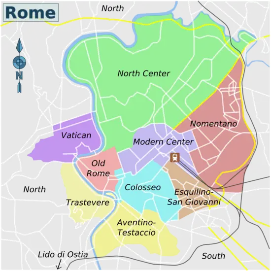 | North Centre Situated in the north part of Rome, home to the Villa Borghese, the Spanish Steps, and the elegant neighbourhoods of Parioli and Salario. |