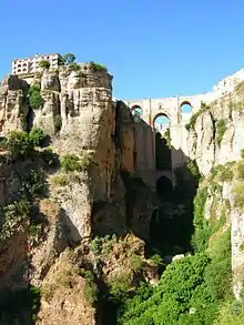 - 🌍 Puente Nuevo. This large and incredible bridge over the Tajo gorge, finished in 1793, is Ronda's principal attraction. The bridge is 70 m long and 98 m high, equivalent to a 30-floor building, and connects the quarter of La Ciudad with the Mercadillo. It was built following the collapse of an earlier bridge from 1735; this bridge had a single arch of 35m but collapsed six years after construction, killing 50 people. There are beautiful views from here of the Sierra de Grazalema to the west. A small museum is inside.