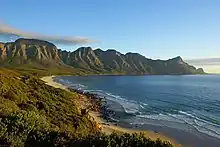 There is a moderate number of permanent inhabitants, many of whom are retired. The local baboons roam the area frequently and should not be fed. It is on the eastern shore of False Bay, just to the south of the mouth of the Rooi-els river, and below the Klein Hangklip. There is a very pleasant little beach which is fairly sheltered from south west swells, and is generally safe for swimming. The Rooi-els river flows into the bay at the south end of the beach, and is usually only inches deep and a pleasant place for kids to play.