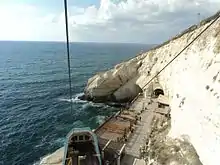 Rosh Haniqra (Hebrew: ראש הנקרה "head of the rock caves"; also transliterated Rosh Hanikra) is a dazzlingly white coastal rock cliff formation on the far northern coast of Israel, next to the Lebanese border.