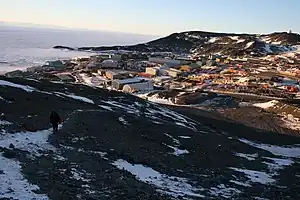 - 🌍 Scott Base, ☏ +64 3 358 0200. The New Zealand base is 3 km from McMurdo, standing on firm rock at Pram Point. There's been a base here since 1957 but only the mess hut remains of the original buildings. It's a series of modules linked by covered corridors, staffed in summer by 85 and in winter by ten.