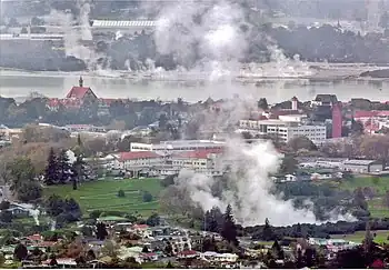 With Rotorua's concentration of geothermal features, a significant amount of hydrogen sulfide is released into the air and the city has a distinctive "rotten eggs" smell.