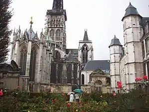 - 🌍 Rouen Cathedral (la cathédrale de Rouen), ☏ +33 2 35 71 51 23, paroisse.ndrc@orange.fr. A stunning building that dates back to the 4th century and is a wonderful mixture of various architectural styles since then. A new spire built in the 19th century meant that it briefly qualified as the tallest building in the world. The façade of the cathedral was famously painted by Claude Monet at various times during the day - like his Haystacks series of paintings - capturing the subject in a variety of lights. In the summer after dark the city puts on a light show projecting some of Monet's cathedral paintings onto the façade of the cathedral itself, each showing lasts approximately 10 minutes and runs until about midnight. €2 for a guided tour.