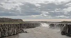 A right turn to route 862 will take you to the exclave of the Vatnajökull National Park. On that piece is Dettifoss, which despite the 'boring' landscape, is the most powerful falls in Europe. A short walk away is Selfoss (not to be confused with a town of the same name in South Iceland), with a somewhat better view overlooking the river and islands made of sediments.