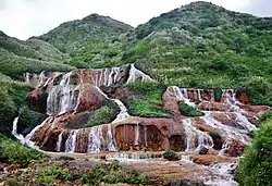 - ๐ Golden Waterfall (้ป้็ๅธ). A stepped series of waterfalls known for its unique golden-brown colour. The water of the waterfall contains high level of toxins due to its proximity to the nearby gold mining area.
