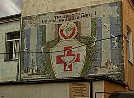 A Soviet-time mosaic on the wall of a hospital in Kaliningrad