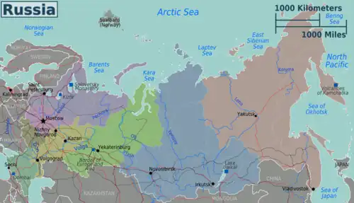 | Russian Far East (Amur Oblast, Chukotka, Jewish Autonomous Oblast, Kamchatka Krai, Khabarovsk Krai, Magadan Oblast, Primorsky Krai, Sakhalin Oblast, Yakutia) One of the coldest regions in Russia, home to the coldest city in the world, Yakutsk. World-famous for national parks, beautiful scenery and mountains, and the volcanoes of Kamchatka. Also a gateway to North Korea and China. |