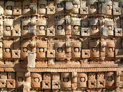 In Mayan archeology, the Puuc style is characterized by the elaborate ornamentation of the facades of ceremonial buildings such as temples and palaces, using limestone quarried in the region.