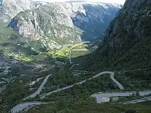 Lysevegen from Lysebotn in the bottom of lysefjorden in east up to Øygardstøl count 27 exciting hairpin bends, open in summer.