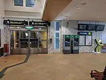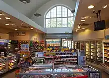 Several convenience stores, cafés and dining options are available. There is staffed ticket sales and vending machines available, but tickets sold are only valid in the SL network.