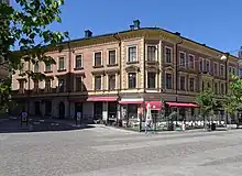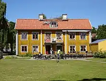 Wendela Hebbes hus (English: Wendela Hebbe’s house) is a museum of Wendela Hebbe, who was the first female professional journalist in Sweden. She became employed at the newspaper Aftonbladet in 1841, where she wrote about theatre and music, and translated books. Besides being a journalist, she also wrote fairy tales. The building is a yellow wooden house, with two floors. It first stood at Snäckviken, close to the headquarters of Astra AB. The property was purchased by Lars Johan Hierta in 1863 to serve as a summer house for Wendela, her daughter Signe and the jointly unrecognised son Edvard Faustman. After being acquired by Södertälje Municipality it was moved to its present location between the canal and Marenplan in the city centre, and underwent extensive renovations. The venue houses a restaurant and a museum section with furniture and paintings from the Hebbe and Faustman families. It also acts as a cultural centre, hosting theatres and exhibitions.