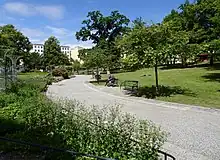 In the 1800s, Södertälje became a seaside resort. In 1849 the Södertälje Bathing Facilities in Badparken park was opened, with both a cold bath facility and a hot bath house. The bathhouses and the Societetshus venue have been demolished, but the Bath hotel at Järnagatan street, Strandhotellet hotel, Stadsparken park, Villa Bellevue and several other buildings still remain from the resort era, which lasted for almost a hundred years until 1945.