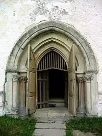 - Karja Church of Saint Catherine (about 3 km from Angla, towards Koikla). It is the smallest church in Saaremaa that dates from the Middle Ages, built in the 13th and 14th centuries. There is no separate bell-tower. The church is famous for its many from Romanesque to Gothic and High Gothic style stone sculptures. Karja Church has more decorations, than any other country church in the Baltic countries.
