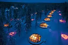 - 🌍 Hotel & Igloo Village Kakslauttanen, Kiilopääntie 9 (Kakslauttanen, about 10 km south of Saariselkä along Highway 4), reservations@kakslauttanen.fi. Here rooms are available in cabins, snow igloos or glass igloos specially designed for Northern Lights observation.