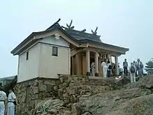 Also, if you ride the train to Ishizuchijinja Station (石鎚神社駅), it is about a ten minute walk from there to the entrance road to Ishizuchi Shrine (not to be confused with access to hiking the mountain, which is more easily done by taking a bus from Saijo station to the ropeway.) The shrine is in homage to the spirit of Mt. Ishizuchi, and is a secluded and nice place to visit with commanding views of the surrounding area. Just head toward giant red gate, visible from the station platform.