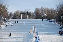 - 🌍 Ski Saint-Bruno, 550, rang des Vingt Cinq Est, ☏ +1 450-653-3441. Alpine ski centre (altitude: 175 m, with a vertical drop of 134 m) with 18 runs (100% lighted), with an hourly capacity of 17,080 skiers. This centre has six resurfacers and nine lifts. The ski area is 35 acres. It has approximately 1,000 employees, 100 volunteer patrollers and 100 volunteer ambassadors. Online store. School on snow. A magical course in the undergrowth takes skiers through the Enchanted Forest which features magical scenery and unique lighting in the evening.