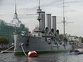 : Gorkovskaya (Горьковская)), ☏ +7 812 314-0374. We-M 10:00–18:00, Closed last Monday of each month. The wooden summer house of the Russian tsar dating from 1703. Enclosed within a more recent protective brick pavilion (so what one sees from the outside is not the original construction), it is the oldest building in the city, hosting a small museum. The quay in front of the cabin is decorated with two authentic Chinese stone lions brought from Jilin City in 1907. - 🌍 Aurora (Крейсер «Аврора»), Petrogradskaya Embankment (Петроградская наб.) 2 (1.5 km (1 mi) from