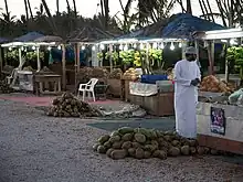 For a refreshing drink, stop at any of the many roadside vendors selling fresh coconut. They will lop the top off a green coconut for you for 200-300 baizas.