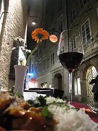 - 🌍 Stiftskeller St. Peter, St. Peter Bezirk 1/4 (in the St. Peter church complex), ☏ +43 662 84 12 68-0. M-Sa 11:30-23. Claims to have been opened in 803, and as such the oldest restaurant in the world. Austrian cuisine with some Mediterranean influences in a quite grandiose environment. mains around €25-35, menus €40 (Feb 2019).