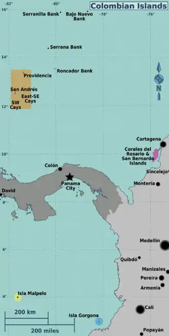 Colombia has several island territories in the Caribbean and in the Pacific.