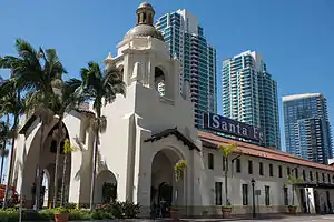 Amtrak's frequent Pacific Surfliner San Luis Obispo-Los Angeles-San Diego route serves San Diego County with several stops along the coast, stopping in Oceanside, Solana Beach, and at the southern end of the line at Union Station in Downtown San Diego, with a secondary station in Old Town San Diego.