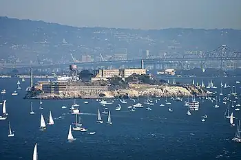 Alcatraz is a decommissioned island federal penitentiary nestled beautifully in the bay. Before it was a prison it served first as a lighthouse (the West Coast's first lighthouse), then a military outpost, and then a military prison. After this, it served as a federal prison for 29 years between 1934 and 1963. Its location was near perfect due to its isolation and the frigid waters and hazardous currents of the bay, which made escape attempts difficult to say the least. Known by its nickname "The Rock", this prison was once home to some of the most notorious inmates in U.S. history. Famous inmates included Al Capone, who served four and a half years here, and Robert Stroud — "The Birdman of Alcatraz," — who spent 17 years here. The notorious gangster and bootlegger, George "Machine Gun" Kelly, also served time at the Rock. It was claimed (by the penitentiary) that no one ever escaped from the prison alive.