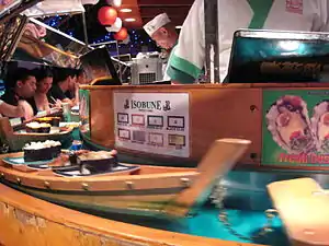 - π Isobune, 1737 Post St (between Buchanan and Webster, in the Kintetsu Mall), β +1-415-563-1030. 10:30AM-10PM daily. As the floating sushi bars so popular in Japan, the sushi chefs at Isobune prepare food and place it on wooden boats that sail around the inner perimeter of an oval counter. Patrons seated at the counter simply lift the dishes they want off the bobbing boats. Your bill depends on the number of empty dishes you're left with. It's fun, cheap, and delicious.
