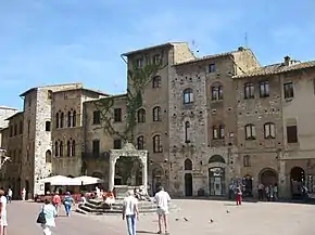 The Piazza del Duomo, the town church's square, is surrounded by thousand-year-old towers. The town's 14 towers are all that remain of the original 72, which were owned by the rich to stay safe when the town was sacked. After Florence took control of San Gimignano, most of them were torn down. The Piazza della Cisterna is a beautiful piazza with an old stone well (no longer used) in the middle. This is where a Thursday market gathers.