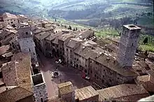 It was used as a filming location by Franco Zeffirelli as a stand-in for the town of Assisi in his 1972 film Brother Sun, Sister Moon, and for Tea with Mussolini, a 1999 drama. San Gimignano is also featured in the video game Assassin's Creed II.