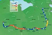 San Juan is served by a single 10.7 mi (17.2 km) rapid transit rail line called "Tren Urbano" (Urban Train). The train starts about a mile south of Condado in southern Santurce with the station of Sagrado Corazón. It then continues south through Hato Rey, Río Piedras before leaving San Juan proper to the west for the suburbs of Guaynabo and Bayamón. Unfortunately, it does not connect any of the most of popular tourist locations like Old San Juan, El Condado or the airport, so the line is unlikely to be of use to most visitors.