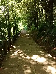 Outside of the capital, walking is not so easy. San Marino is the only country in the world with more vehicles than people, and it shows—sidewalks are inconsistent at best, especially when going between towns. However, there is a shaded stone path, Costa dell'Arnella, between the City of San Marino and Borgo Maggiore. It starts at the western end of Contrada Omerelli and ends a short distance from the Borgo Maggiore cable car station. Because the City of San Marino is so high up, the path is quite steep.