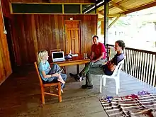 Sit on the wonderful wooden terrace of the community hotel and watch the colourful birds in the tree tops just some metres away.