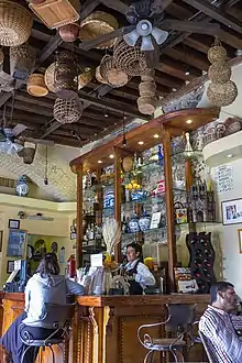 - 🌍 Mama Mia, Umaran 8 (a few doors from the Jardín), ☏ +52 415 152 2063, contactosanmiguel@mamamia.com.mx. Su-Th 08:00-03:00, F Sa 08:00-05:00. Mama Mia's is four clubs in one. There's a restaurant and bar in the center with some amazing Italian food, a sports bar to the left (usually displaying a soccer or football game of some kind), a music bar to the right where local acts frequently play (especially Pilaseca, a very popular funk-blues band that tours most of Mexico and the States), and a hard-to-find rooftop lounge overlooking the city. This is a great default place to while away the hours when nothing else is appealing – the music is worth it, if nothing else.