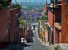 Maybe 90% of San Miguel's attractions are within walking distance. Just keep in mind that because San Miguel was built into the side of a mountain, it can turn out to be difficult to traverse, some inclines are 15 or 20 degrees. Furthermore, the streets are cobbled and narrow – some were nothing but goat tracks before they were paved – and many have fallen into disrepair. Curbs are often a high step away from the road. All in all, the town can be unforgiving to an inexperienced walker. For this reason, it is advisable to bring comfortable shoes.