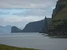 As Sandoy is approached from Streymoy, there are views of a tiny island to the west of Sandoy. This island, Trøllhøvdi belongs to Kirkjubøur and is used for stock grazing.