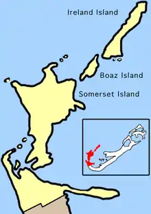 Sandys Parish (pronounced "sands") consists of the three islands of Ireland Island, Boaz Island, and Somerset Island, as well as a small part of the main island of Bermuda.