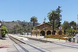 Amtrak provides service to Santa Barbara on the Pacific Surfliner (San Luis Obispo to San Diego) and Coast Starlight (Seattle to Los Angeles) trains. The ride is beautiful on its legs that are near the coast, but delays do occur, especially on the Coast Starlight. The π Santa Barbara station is housed in a historical landmark, built in 1902 and located at 209 State St, an easy walk from the beaches and the commercial areas of State St.