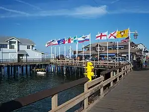 - π Stearns Wharf (End of State Street along the Waterfront). This picturesque 1872 wharf - the longest deep-water pier between Los Angeles and San Francisco - has lots of history. It is named after its builder, local lumberman John P. Stearns. Badly damaged several times by fire, it has been repeatedly rebuilt and today features more than a dozen shops and restaurants, and one of the best views in California from the end of its pier. There's also a small public aquarium, the Sea Center, that's associated with the Museum of Natural History. You may see brown pelicans at the end of the wharf. There's a bait and tackle shop, and no fishing license is required to fish from the wharf. It was once owned by Hollywood legend James Cagney. Free.