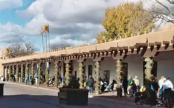 - 🌍 Palace of the Governors / New Mexico History Museum, 105 E Palace Ave (North face of Santa Fe Plaza), ☏ +1 505 476-5200. Daily 10AM-5PM, closed M Nov-Apr (open Fridays 5-7PM May-Oct and first Friday of each month Nov-Apr). The oldest public building in the United States, the Palace of the Governors is a 17th-century building that once served as the main capitol building and now houses an excellent historical museum and shop, with exhibits on the history of the building and a functioning antique print press. Behind the Palace is the New Mexico History Museum, with three floors of exhibits on the history of New Mexico, including numerous artifacts from the prehistory to the present. While the Palace is being renovated (as of 2022), disruptions are minimal most days and exhibits are displaced but available. Local Native American artists sell their work beneath the portal (covered facade) facing the Plaza. They are awarded a spot via an official lottery system. $12 adults, youth 16 and under free.